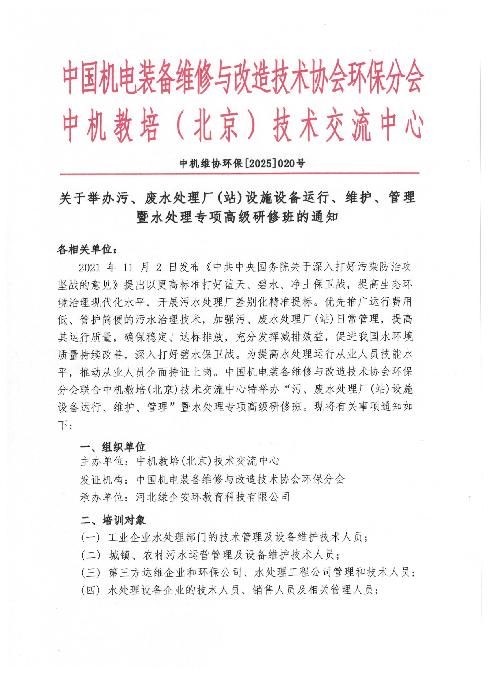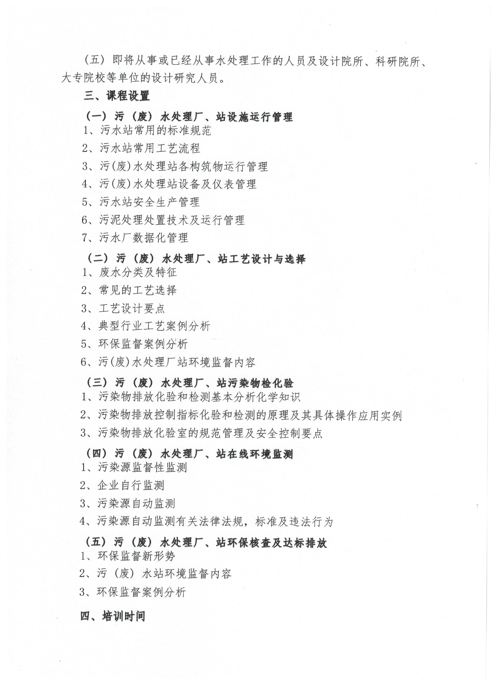 关于举办污、废水处理厂(站)设施设备运行、维护、管理暨水处理专项高级研修班的通知